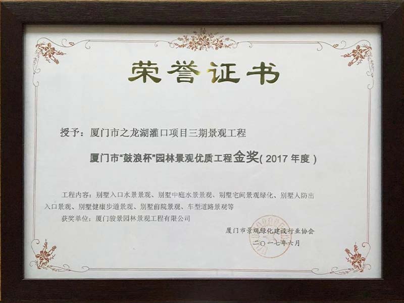 龍湖(hú)灌口項目三期“鼓浪杯”園林(lín)景觀優質工(gōng)程金(jīn)獎