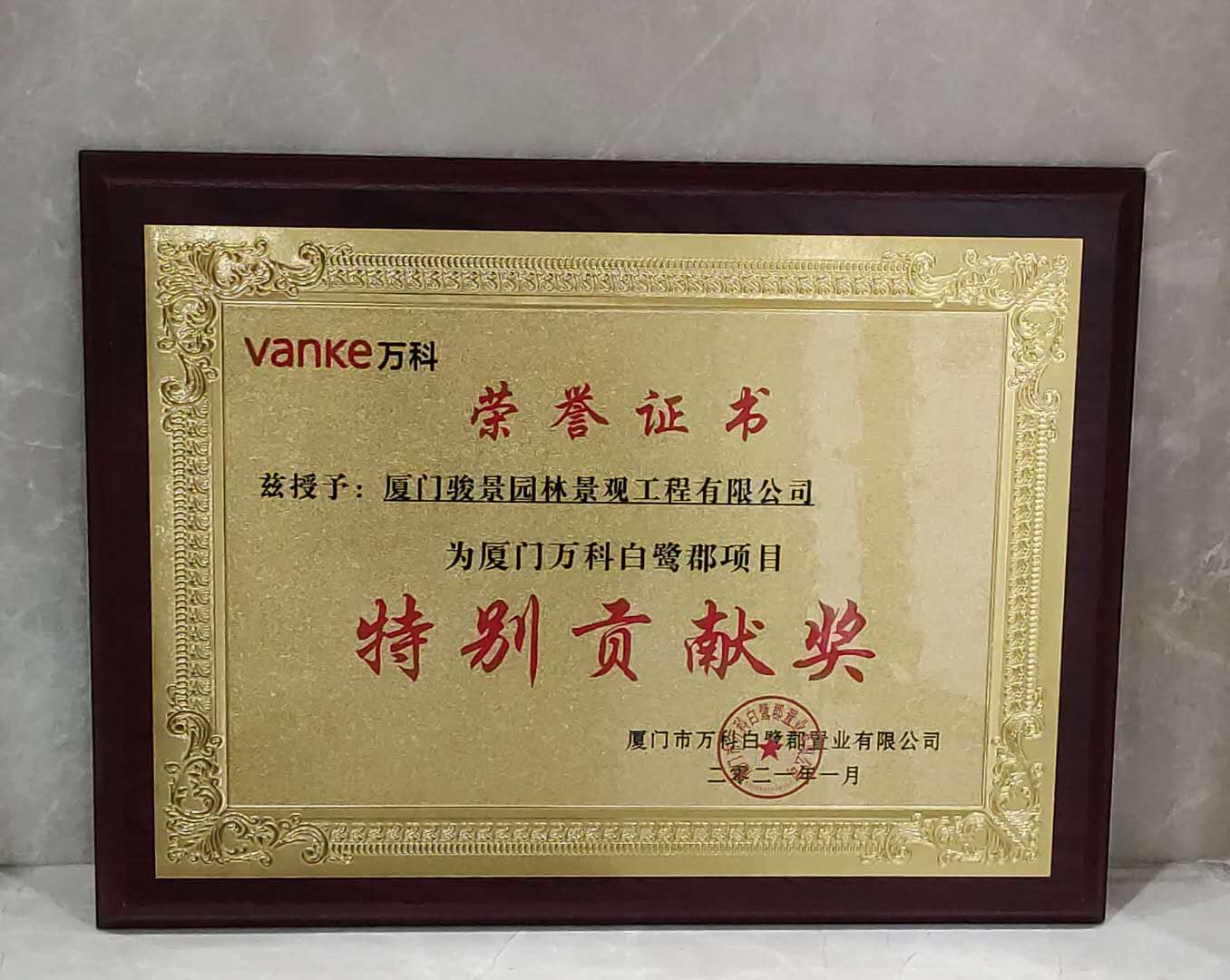 廈門(mén)萬科(kē)白(bái)鹭郡項目授予“特别貢獻獎”
