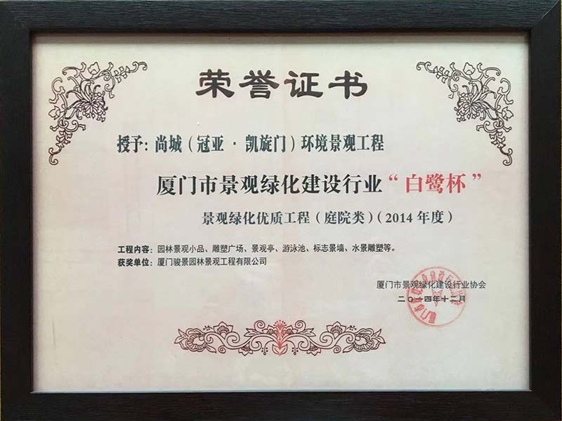 龍湖(hú)灌口項目三期“鼓浪杯”園林(lín)景觀優質工(gōng)程金(jīn)獎