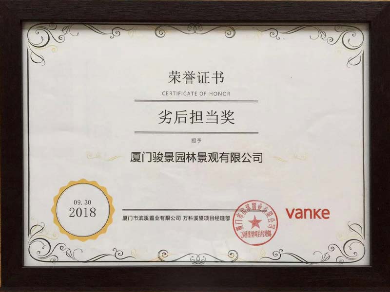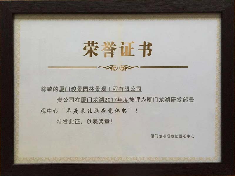 廈門(mén)龍湖(hú)研發部景觀中心“年(nián)度最佳服務意識獎”