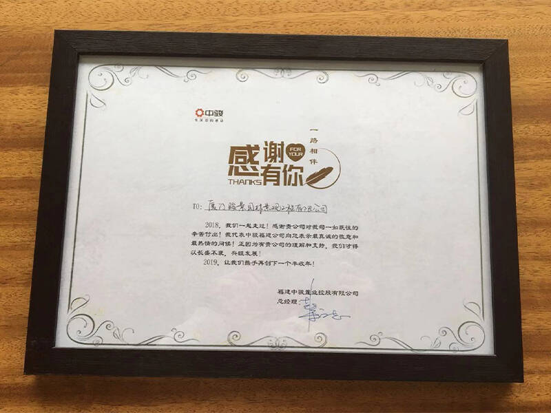 獲得(de)中駿集團福建公司“2019年(nián)度優秀供應商”稱号
